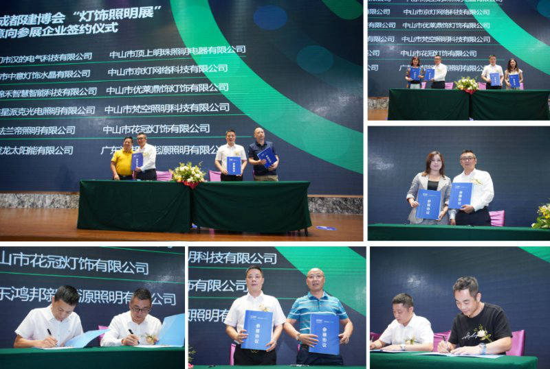 发布会现场英富曼天一展览(成都)有限公司朱江龙常务副总经理及赵仕阳副总经理分别与汉的电气、顶上明珠照明、中意灯饰、京灯网络、锦禾智慧、优莱鼎饰灯饰、星派克光电照明、梵空照明、法兰帝照明、花冠灯饰、聚龙太阳能、鸿邦新能源照明、伊米特卫浴、威雅仕陶瓷、霖霖卫浴在内的近20家灯饰照明及陶瓷卫浴企业签订了参展协议。除此之外,还有13家确定参展企业由于时间原因不能到场签订参展协议,他们分别是埃美特洁具、信诺卫浴、乐鹏卫浴、中盛陶瓷、巴波尔卫浴、纳朗陶瓷、欧风卫浴、美迪雅陶瓷、洁妮斯、菲戈贝尔厨卫、康住卫浴、易家丽家居、纬图科技,会后将与组委会直接签订参展协议。