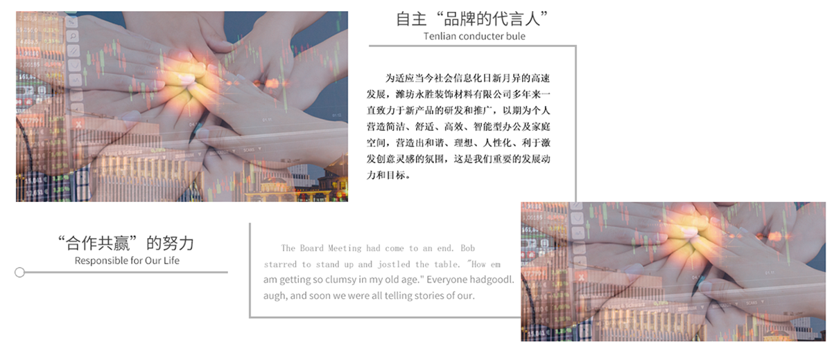 潍坊永胜装饰创建于1997年,经过20年的不懈努力和创新发展。公司已经从单一的板材经销商发展成为本地区具有较大影响力的室内装饰材料综合服务商,产品包括板材、装饰五金、胶黏剂、涂料等装饰建材。